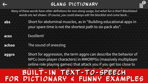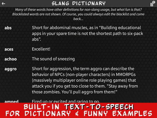 With over 250 slang words from all over the globe, there are sure to be some words or usages that are new to your older student or even you. No worries! A tongue-in-cheek slang dictionary is built into the app with a handy text-to-speech function to read the definitions aloud.
