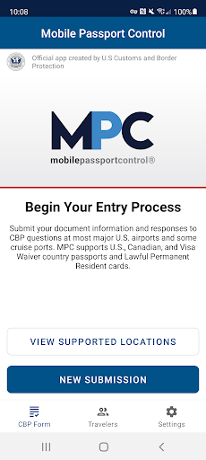 Mobile Passport Control (MPC) is an official application created by U.S. Customs and Border Protection that streamlines your CBP processing experience at select U.S. entry locations. Simply fill out your traveler profile, answer CBP inspection-related questions, and proceed straight to the “Mobile Passport Control” lane at the airport or seaport.