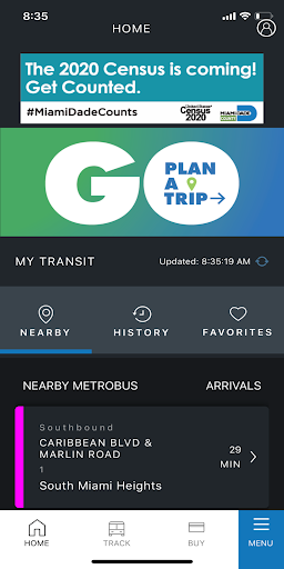 Nearby: View all nearby stops and stations, real-time vehicles and route alignments. Scroll around the Miami-Dade County map and explore.
