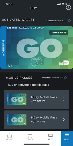 Mobile Barcode/Passes: Purchase a 1-Day or 7-Day mobile pass.
