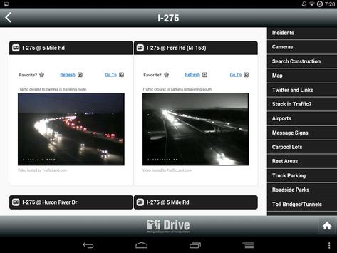 See real-time traffic camera views and changeable message signs on major routes