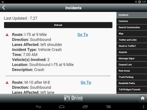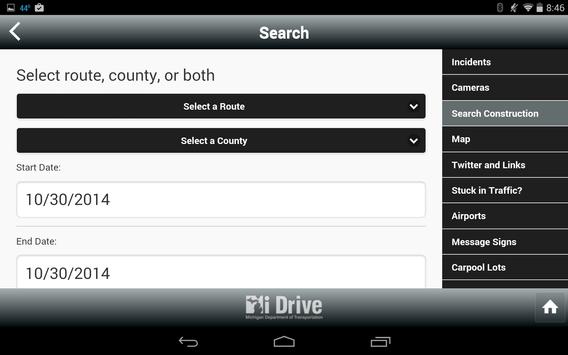 Use this handy Mi Drive app to check real-time road and traffic information about Michigan (M), Interstate (I) and US routes across the state before getting behind the wheel. It's brought to you by the Michigan Department of Transportation (MDOT).