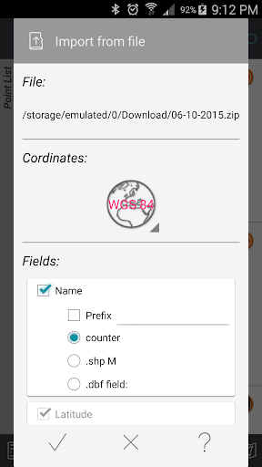 - Import points from text files (.txt, .csv) or Shape files (.shp)