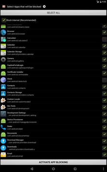 - Only WIFI connection can be disabled by the Block Internet feature in devices with Android 5.x or newer due to new limitations in the Android API.
