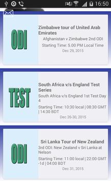 cricket matches across the world and also highlights of previous matches. Very easy and real-time updation from server. Every user will be notifying about live matches before starting through message notification (GCM) system . User can replay to admin for any kinds of help.
