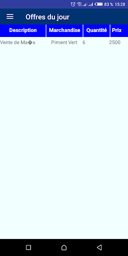 Application intuitive, simple et faible d’utilisation. Cet outil permet de poster des offres de vente et demande d’achat à l’attention de tous les acteurs de la filière Agro-Silvo pastoral.