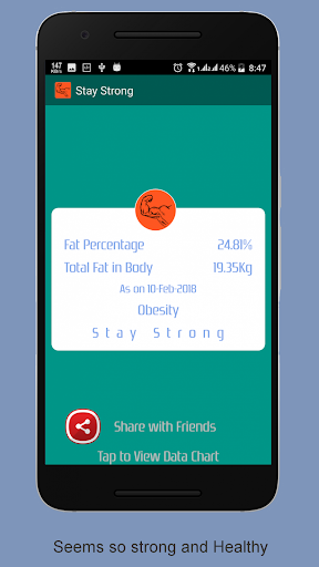 Do you know how much Fat you are holding? Do you know how much fat your body should contain? We help you to find how much fat your body contains and how much an average person body should contain. Stay Strong app helps you to monitor your fat level in your body.