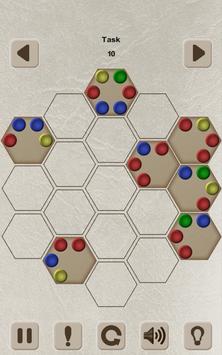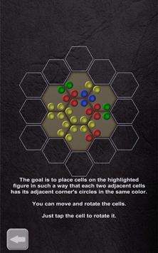 The goal is to place cells on the highlighted figure in such a way that each two adjacent cells has its adjacent corner's circles in the same color.