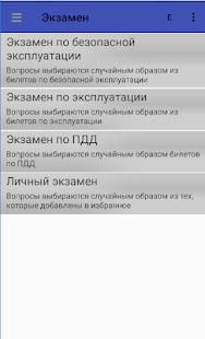 The application is a tool in preparing for the exam in Gostekhnadzor for self-propelled vehicles of categories E and F.