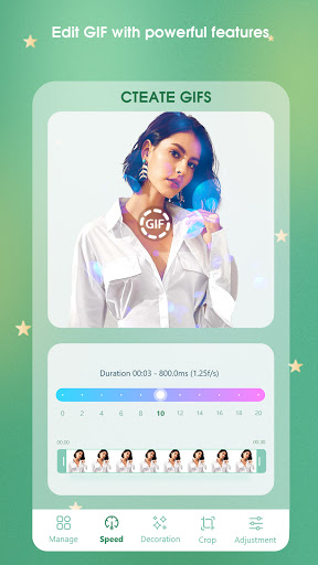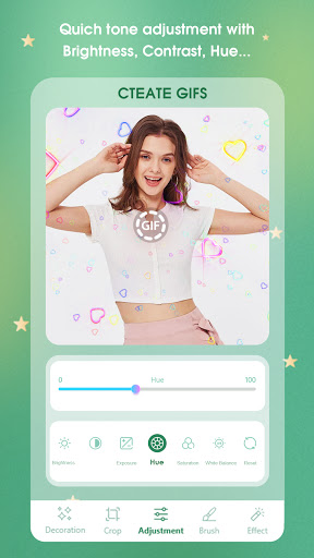 - Create GIF images with many beautiful effects, can easily adjust the speed of the GIF, select the GIF area easily, and crop the GIF according to the optional frames in addition, we can edit the color , image balance in the toolkit edit photo.
