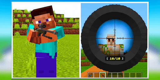 Weapons for mcpe have realistic physics, while traces of bullets are not visible, but the radius of action of the gun is very extensive. Accurate strikes on mobs are provided. Especially if you have a sniper.