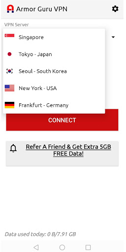Free Asia VPN by Armor Guru comes with 5 servers (Singapore, Japan, South Korea, US & Germany). Armor Guru's