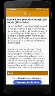 How to get call details of any number application helps the Indian prepaid telecom users to find the numbers for specific operations like Recharge, Main, Message, Net Balance enquiry, Finding own number and Customer care number. As of now app supports telecom operators like Jio, Airtel, Aircel, Idea, Vodafone, Uninor, Tat Docome, BSNL and Reliance.