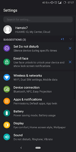Note : on the latest EMUI 8.X updates themes can not change icons in status bar and settings app and etc. users CAN Change them using Substratum and Andromeda without root. Please join us in the telegram group for more help or contact me directly using email or telegram by clicking on the H7 logo inside the app.