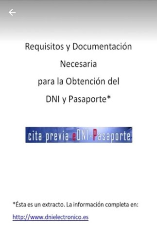 এই অ্যাপ্লিকেশনের সাথে আপনি স্পেনের একটি ডিএনআই পাওয়ার প্রয়োজনীয়তা জানতে পারেন, এটি প্রথম নিবন্ধনের জন্য কিনা, যেমন এটি পুনর্নবীকরণ, ক্ষতি বা অবনতি।