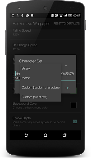 A Live Wallpaper of Falling Characters on your screen. Should make anyone feel like a hacker.