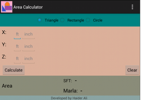 When you are out in field and want to calculate area it becomes very cumbersome to do all calculations within limited time frame. Area calculator helps you calculate area instantly for triangles, rectangles and circles.
