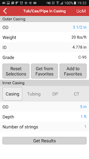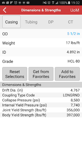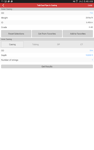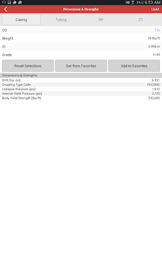 • Look up specifications for your most frequently used tubulars to quickly calculate capacity and annulus volumes with just a few taps.