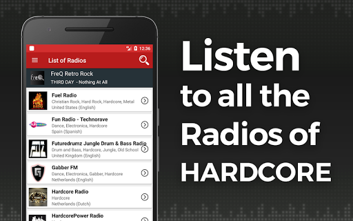 Looking for an app with all the radios of Hardcore Music? Don't waste your time!! You've found the Radio App you were looking for, listen online the best radio stations of Hardcore, easily and for Free
