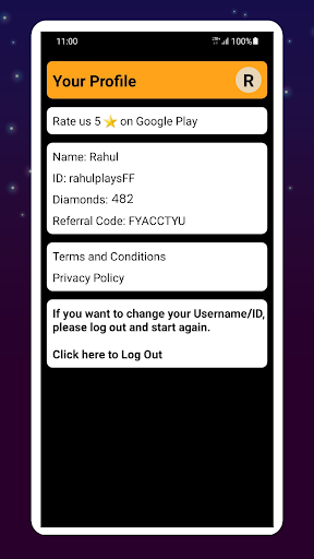 Other than this, make sure you share this app with your friends using your referral code to earn even more diamonds. You can also view your profile in the app. Make sure to read our policies as listed below: