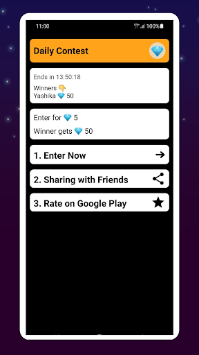 💎 Daily Diamonds Giveaways Contest: You can enter contest everyday with 5 diamonds and get flat 50 diamonds in 24 hours!