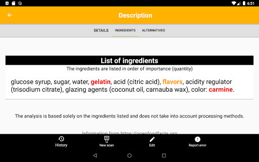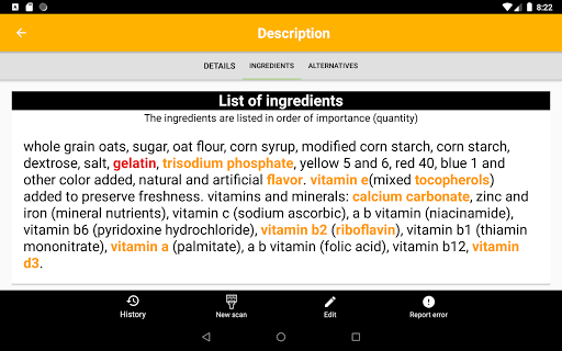 My vegetarian scanner application is easy to use, just scan the barcode on the packaging of a food product or a drink.