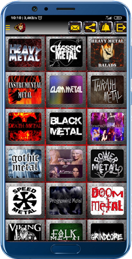 Heavy Metal Ballads, Heavy Metal, Melodic Heavy Metal, Classic Metal, Instrumental, Glam Metal, Thrash Metal, Death Metal, Melodic Death Metal, Black Metal, Melodic Black Metal, Symphonic Metal, Gothic Metal, Women of Metal, Power Metal, Melodic Power Metal, Speed Metal, Progressive Metal, Doom Metal, Viking Metal, Folk Metal, Grindcore, Alternative Metal, Metalcore, Nu Metal, Industrial Metal, Groove Metal, Neo Classical Metal, DeathCore and Slamming Brutal Death Metal and any other that you want to add.