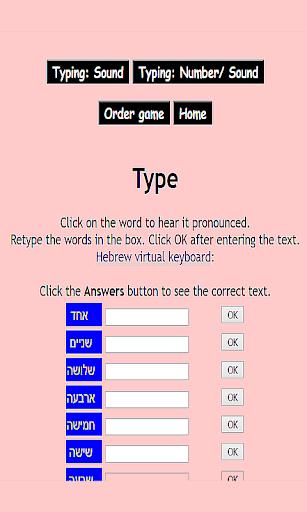 2. Spelling games in Hebrew, such as sorting abc by order, puzzles, hearing training etc.