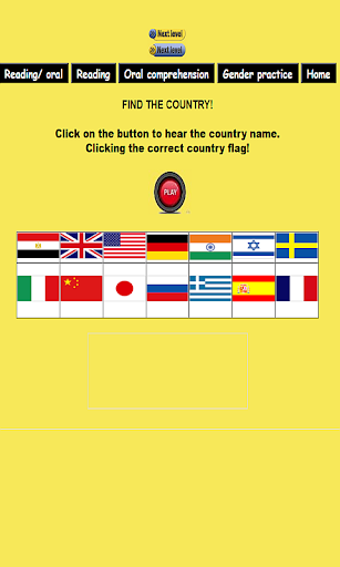 This app divides the reading and the oral comprehension skills into two separate presentation screens.