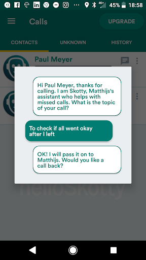 Calbey screens unknown callers by asking the name of the caller and the topic of the call, so you can decide if you want to call back.