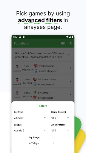 - In the Football Betting Statistics: You will see your betting type, the league you are following, the day interval, and how many percent of the home and away teams are likely to be close to this prediction.