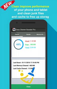 Easy Cleaner Booster Pro Boost and Clean your phone and speed up your devices,improve performance of your phone and tablet and clean junk files and cache to free up storage,You’ll not have to worry anymore about how to clear cache or how to speed up Android phone or how to save your battery life or how to boost your games .
