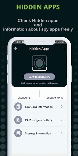 Find Hidden Apps, Spy Apps allows you to find hidden or malicious applications hidden spyware