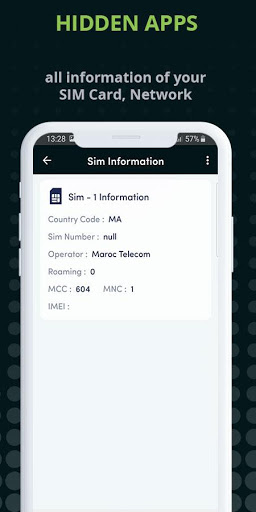 - information about sim cards. (Country code, Sim number, Operator name, Roaming, IMEI, MCC, MNC)