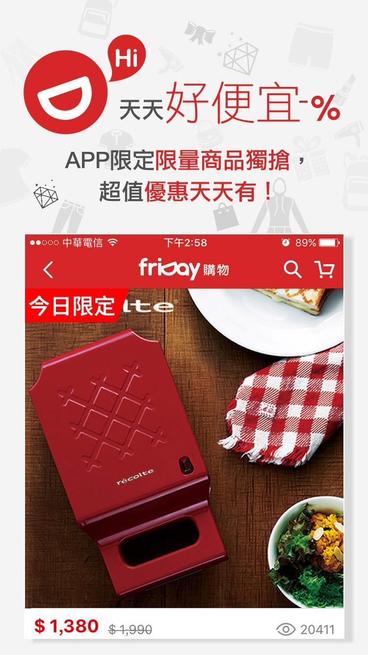 APP限定限量破盤商品獨搶,周五還會有出奇不意的驚喜價格,超值優惠天天有!