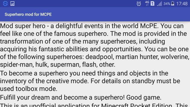 Superhero mod - a delightful events in the world McPE. You can feel like one of the famous superhero. The mod is provided in the transformation of one of the many superheroes, including acquiring his fantastic abilities and opportunities.