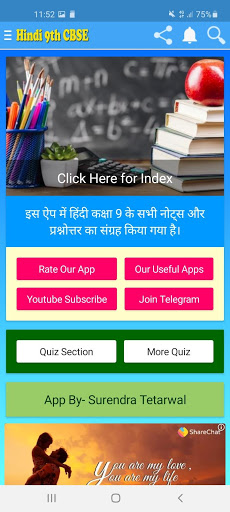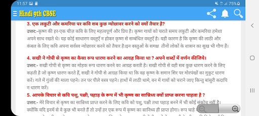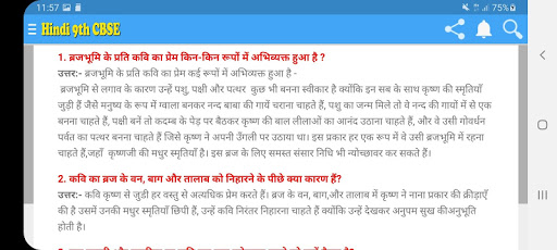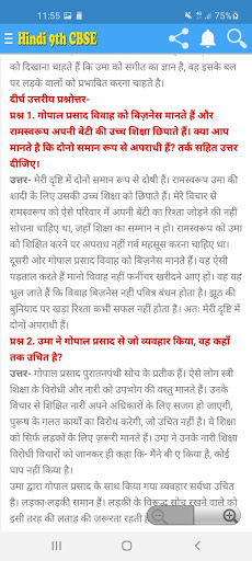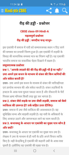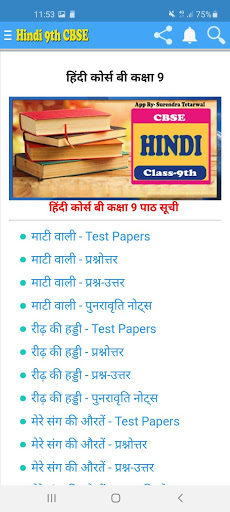 App contains solutions of all chapters of NCERT Hindi for class 9. It contains some sample questions papers and chapter wise question answers also. This app has a very simple user interface.