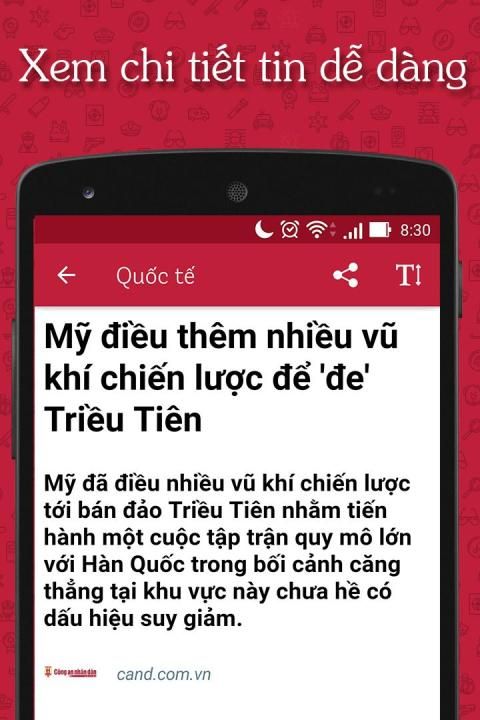 * Dễ dàng chia sẽ các tin hay cho bạn bè qua Facebook, Zalo, Gmail.