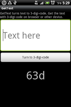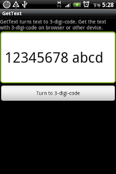 Temporarily save text on cloud and easily get the text on Android device or any other device with internet browser. Simply turns text into a 3-digit code. Easy to remember to retrieve the text.