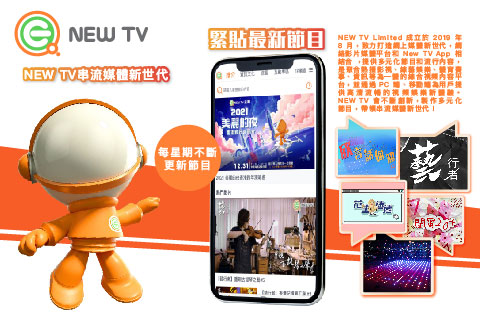 NEW TV是香港成立,以製作及播放新聞、娛樂、資訊、體育、音樂、影視視頻的互聯網媒體平台。配合互聯網媒體製作廣播新潮流,主要業務包括多元化視頻製作及播放、大型活動策劃、籌辦及製作,覆蓋範圍遍及世界各地,積極發展成為極具代表性的互聯網廣播新媒體。