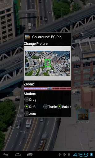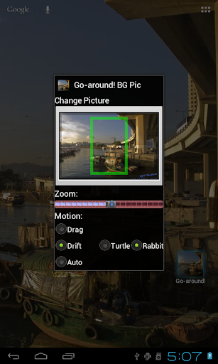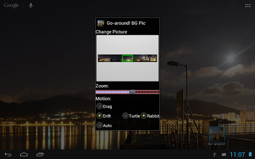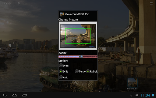 The Live wallpaper simple but power saving, it showing your selected picture in background, the decoded picture dimension will always larger than your display, only part of the picture will be shown at a time.