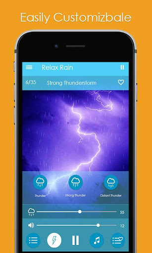 Rain sounds sleep app contains more than 30 rain sounds, rain sounds with thunders, and relaxing music sounds. You can mix these thunders, rain, and music sounds together to get more relax sleeping sounds. The sounds of rain you can adjust the volume, thunders, and music separately to get the ideal combination and so encourage a deep relaxation of the mind.