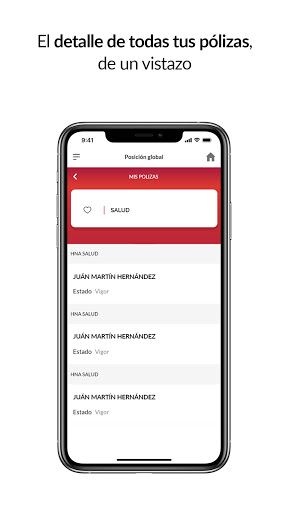 Si dispones de seguro de salud, podrás consultar a través de la aplicación tu cuadro médico, así como solicitar autorizaciones médicas y/o reembolsos de gastos médicas desde la propia aplicación.