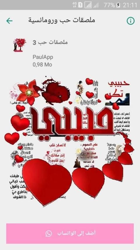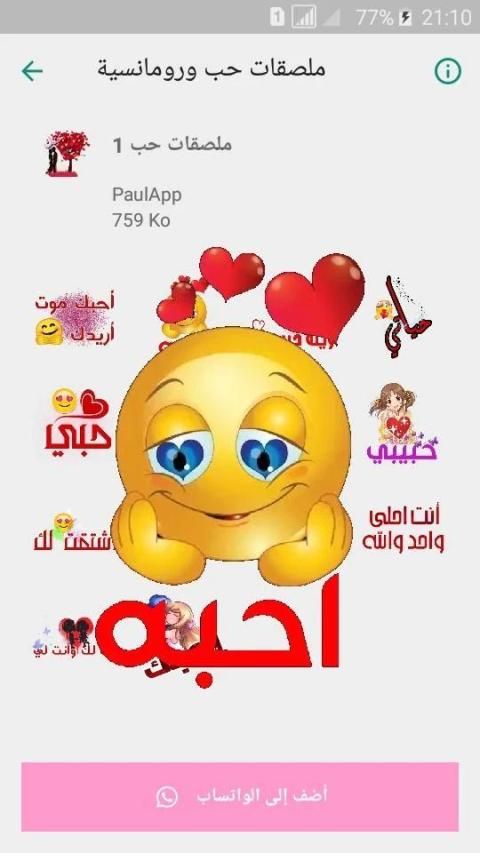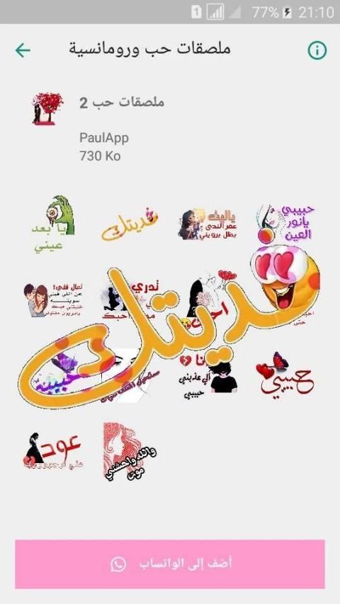 يضم هذا التطبيق ملصقات حلوة رائعة رومانسية وحميمية ملصقات حب وغرام وشوق للتواصل والدردشة عبر الواتساب