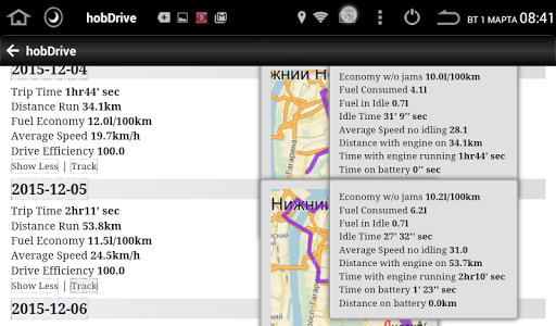 HobDrive uses your ELM327 vehicle adapter and GPS sensor to calculate and aggregate trip information.