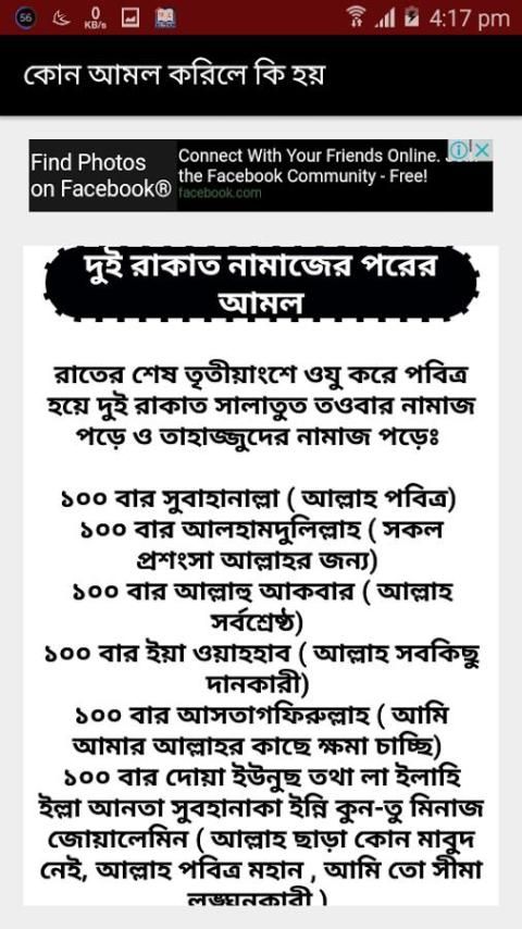 Description of কোন আমল করিলে কি হয়