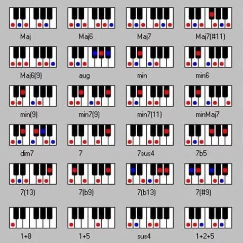 - 1500+ piano chords, up to 6th inversions such as: major, minor, diminished, augmented, sevenths, etc.
