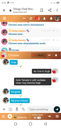 Meet Telugu girls & guys online for telugu chat, mingle and have fun with awesome friends using honeychat telugu app. Our online chat rooms will help you to stay connected with each other and discover new telugu friends nearby in hyderabad, Vizag, anywhere in Andhra state or around the world.