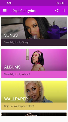 Find all your favourite songs and albums from Doja Cat and sing along with them. Find your favourite Doja Cat wallpaper for your phone with this app!