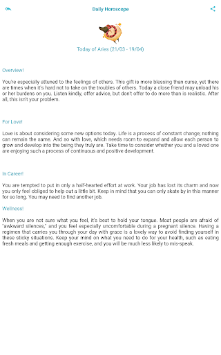 It was good for about a month. But now the same horoscope for two weeks now. Uninstalling this app.